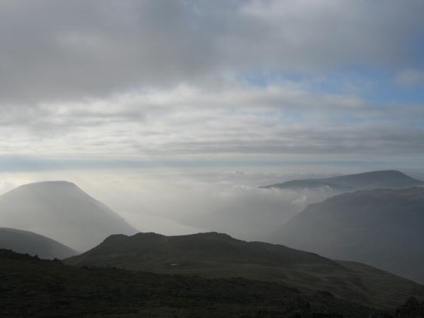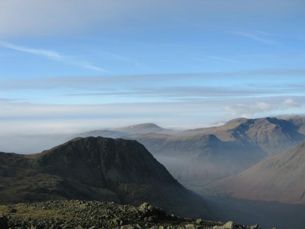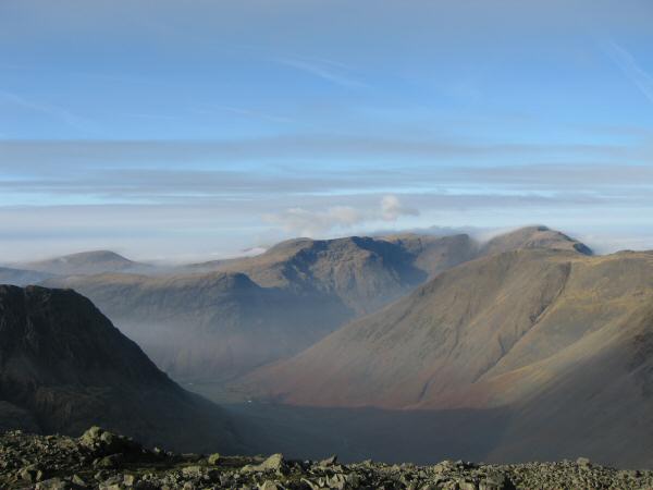 Wasdale from Lingmell's summit with Illgill Head on the left and Seatallan on the right