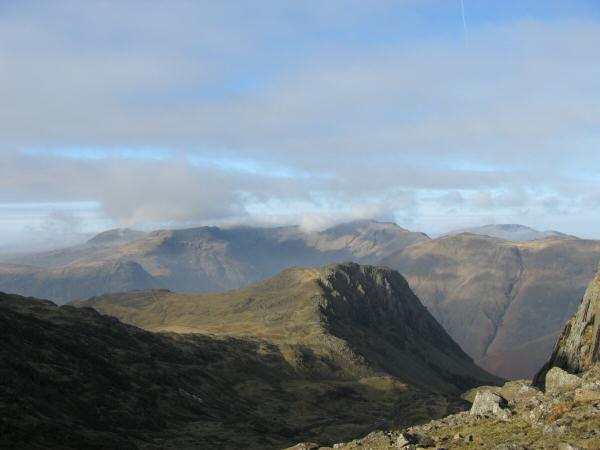 Ill Crag and Bowfell from the ascent of Scafell Pike
