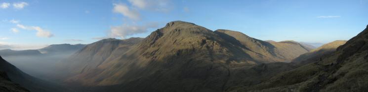 Lingmell and Great Gable with Styhead Tarn on the far right