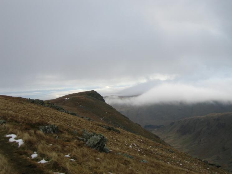 The Rigg and Rough Crag with Kidsty Pike on the right and Harter Fell lost in cloud on the left