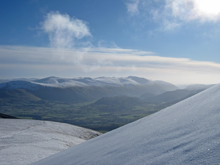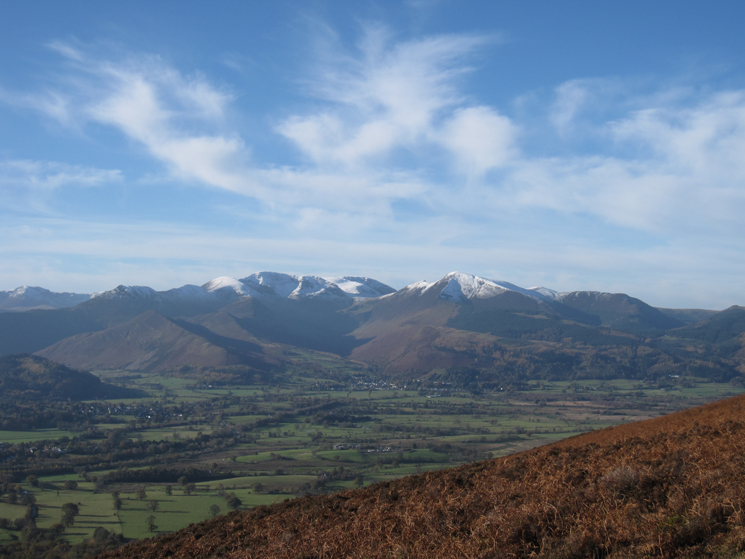 Blencathra, Lonscale Fell, the Helvellyn ridge and Little Man from Skiddaw