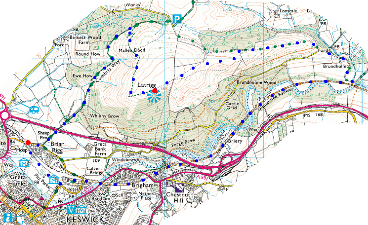 Route: Briar Rigg, Keswick - Latrigg - Brundholme - Keswick Railway footpath - Fitz Park - Briar Rigg