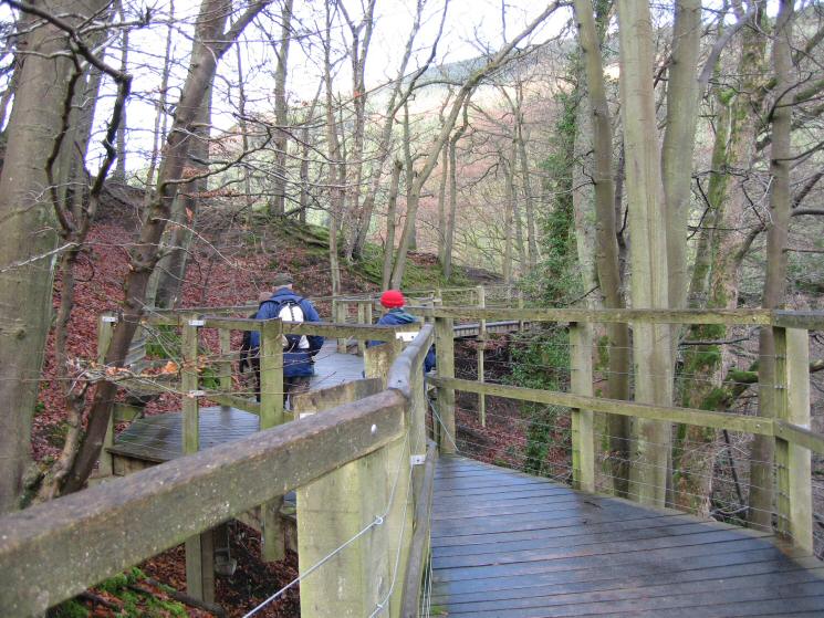 The walkway above the River Greta. The old railway tunnel is filled in.