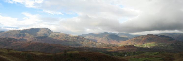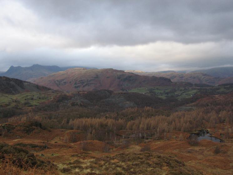 Lingmoor Fell with the Langdale Pikes on the far left from Holme Fell