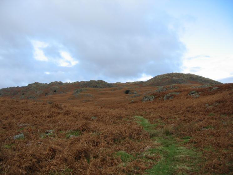 The Dunnerdale Fells ahead with the top we visited in the middle. Great Stickle on the right