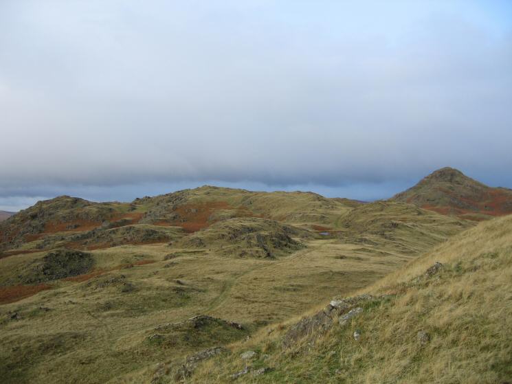 The Pike with Whitfell on the left from the rocky ravine above Stonestar