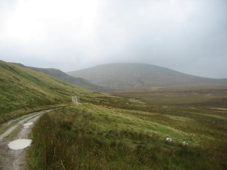 Looking back along the Old Coach Road with Clough Head's top now in cloud
