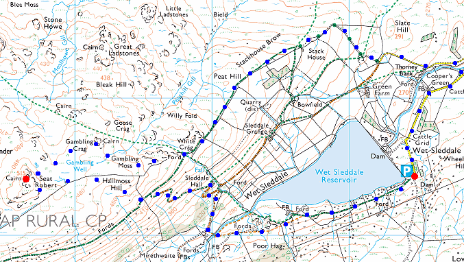 Route: Wet Sleddale Reservoir Dam - Sleddale Hall - Hallmoss Hill - Seat Robert - Gambling Crag - Stackhouse Brow - Thorney Bank - Cooper's Green - Wet Sleddale Reservoir Dam