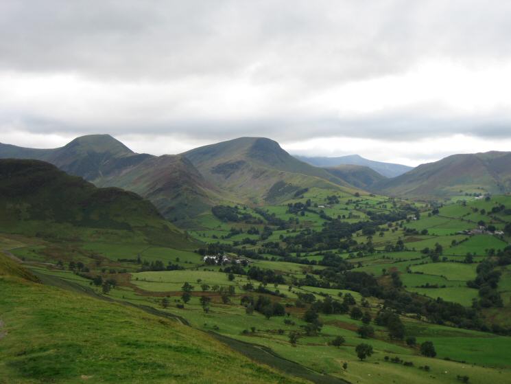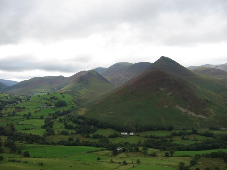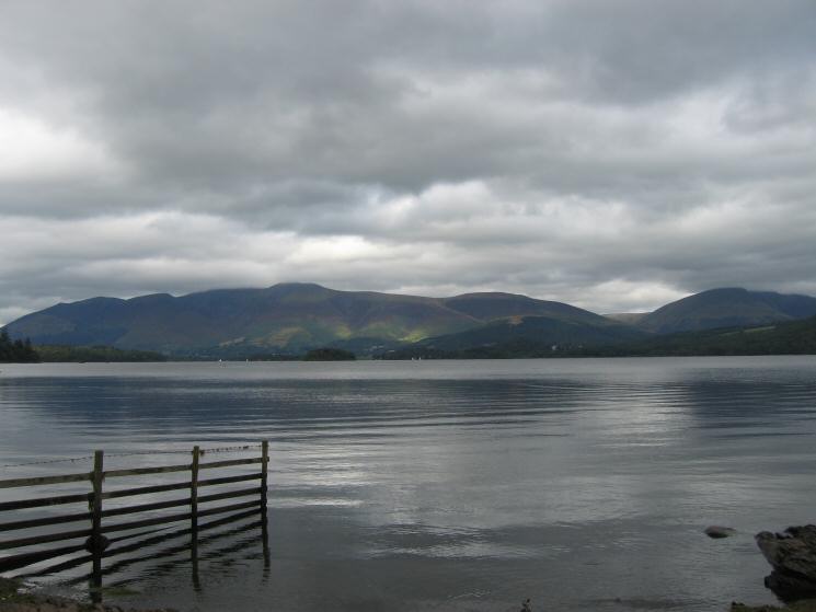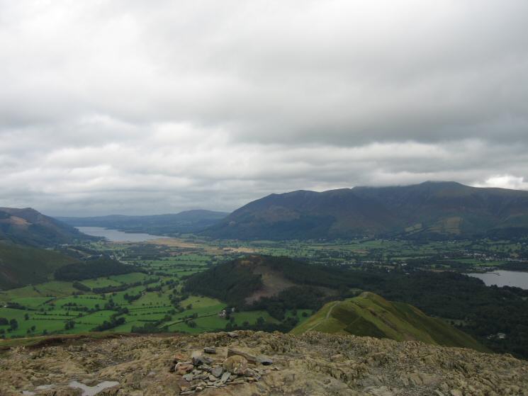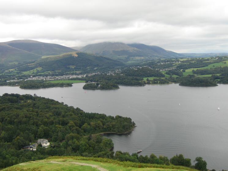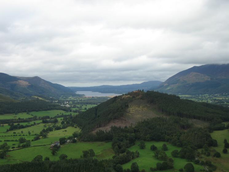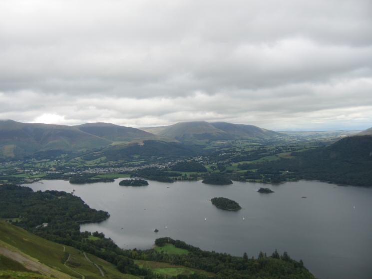 Derwent Water, Keswick and a cloud covered Blencathra from the route up Skelgill Bank