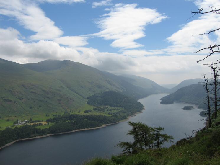 Looking north down Thirlmere towards Blencathra from Deergarth How Island with Raven Crag on the left
