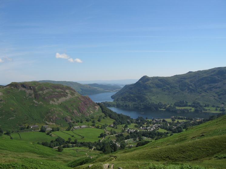 Looking back down on Glenridding village and the head of Ullswater from the Mires Beck path