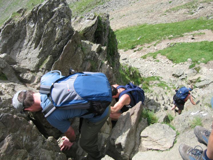 Descending the short gully at the end of Striding Edge