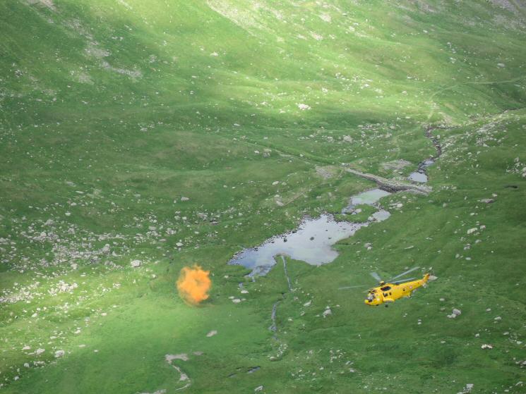 A rescue helicopter out on exercise in Brown Cove