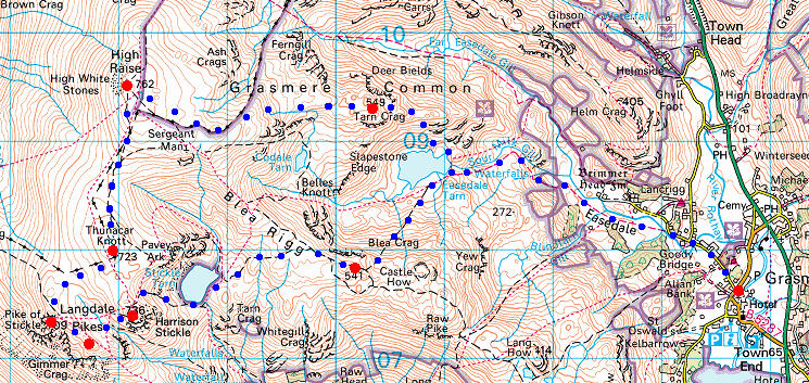 Route: Grasmere Village - Easedale - Sourmilk Gill - Easedale Tarn - Tarn Crag - Codale Head - High Raise - Thunacar Knott - Pike O'Stickle - Loft Crag - Harrison Stickle - Stickle Tarn - Blea Rigg - Easedale Tarn - Sourmilk Gill - Easedale - Grasmere Village