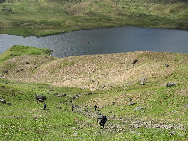 Climbing steeply up onto the ridge from Easedale Tarn