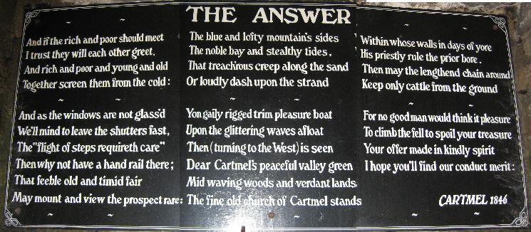 We followed A. Wainwright's 'Hampsfell' walk in his book 'The Outlying Fells of Lakeland' [page 58].
