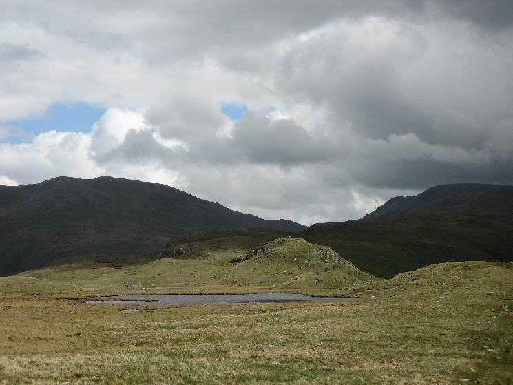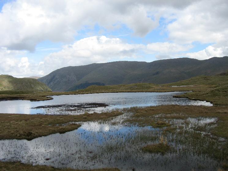 Helvellyn from the large nameless tarn on the wide ridge to Steel Fell