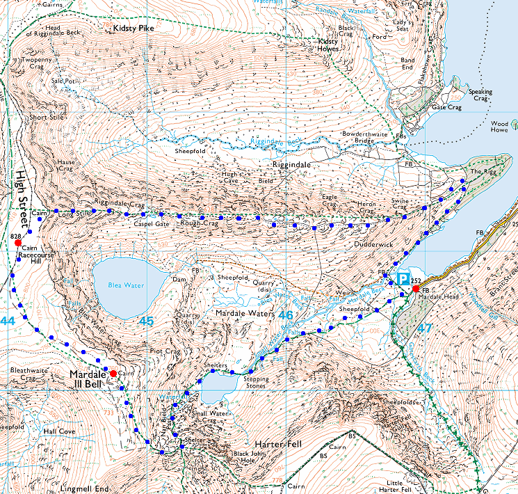 Route: Mardale Head - Rough Crag - Caspel Gate Tarn - Long Stile - High Street - Mardale Ill Bell - Nan Bield Pass - Small Water - Mardale Head