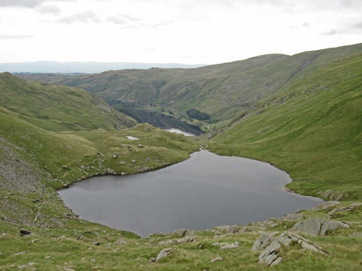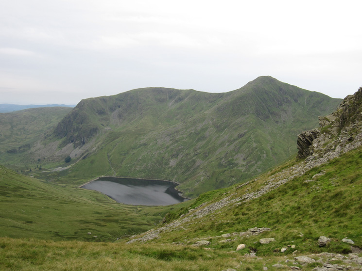Yoke and Ill Bell above Kentmere Reservoir from Nan Bield Pass