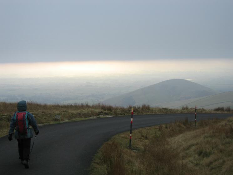 Heading down the Great Dun Fell road with Knock Pike ahead