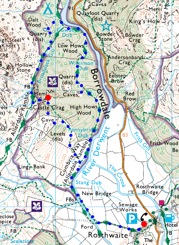 Route: Rosthwaite - Castle Crag - Broadslack Gill - River Derwent - Rosthwaite