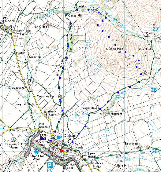 Route: Dufton - High Scald Fell track - Dufton Pike - Great Rundale Beck - Hurning Lane (Pennine Way) - Dufton