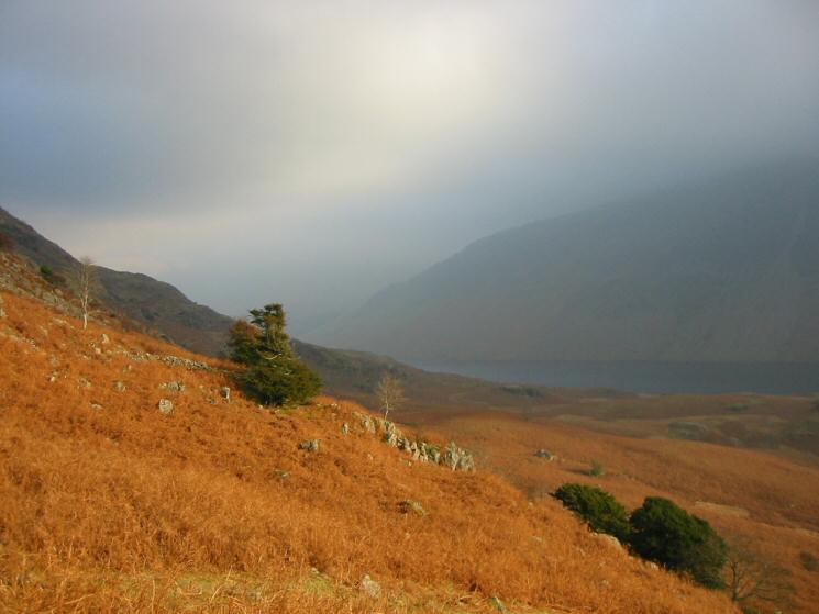 A glimpse of Wastwater and the Screes from the lower slopes of Middle Fell