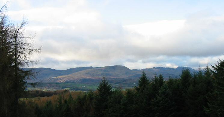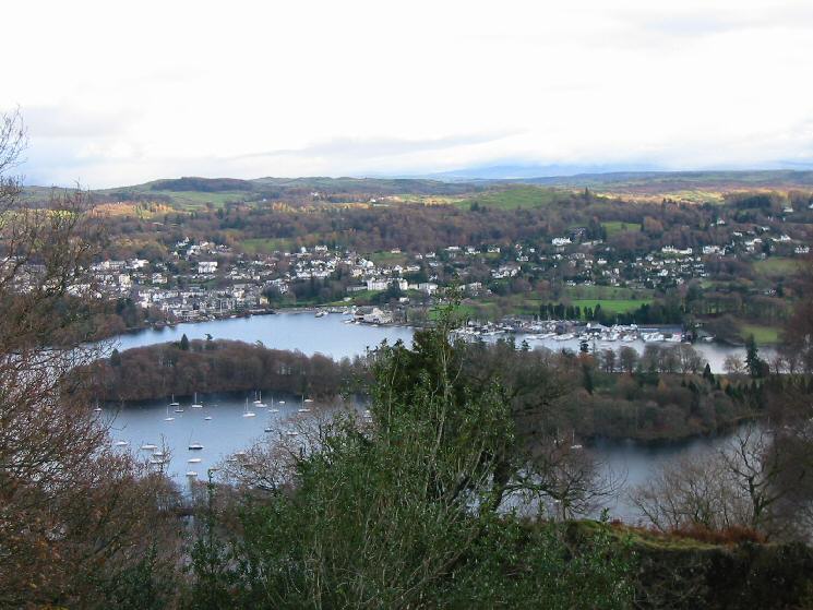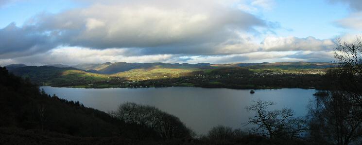 Looking over Windermere to Nab Scar, High Pike, Red Screes and Wansfell Pike