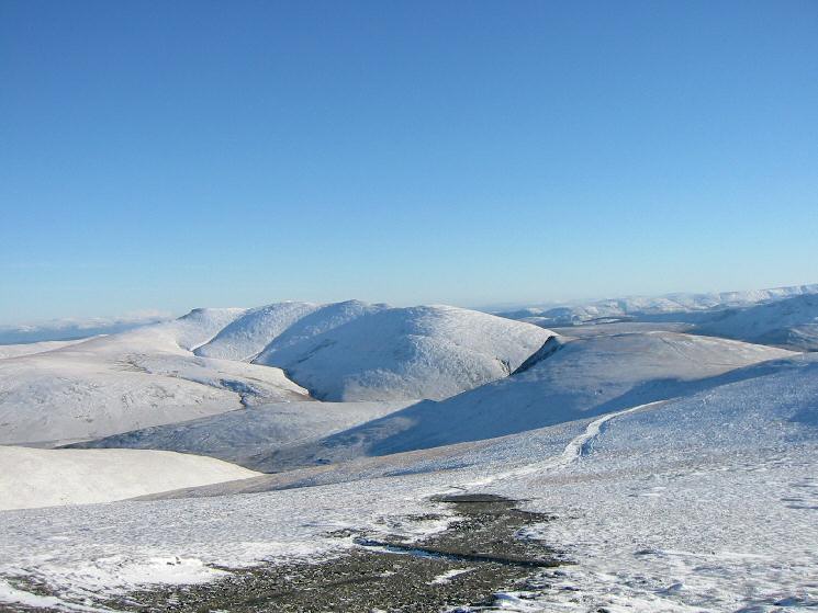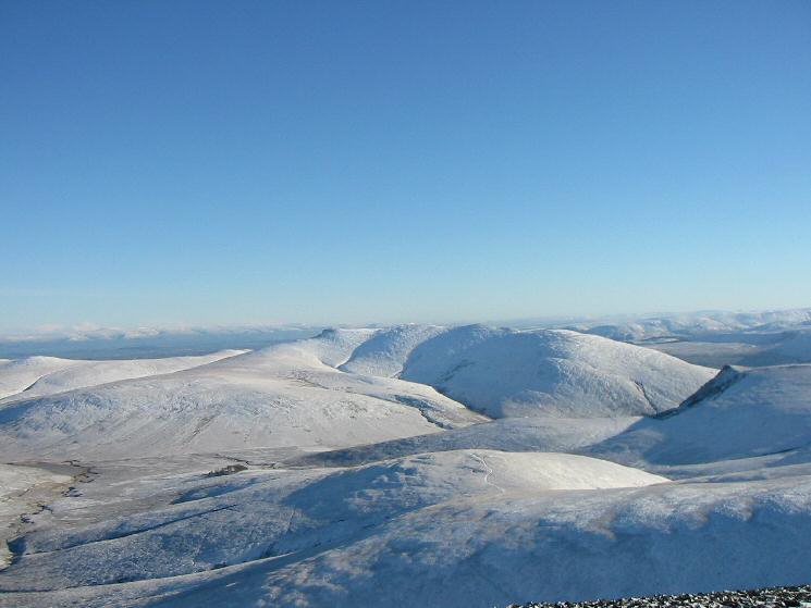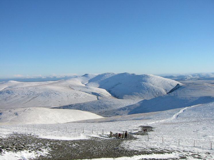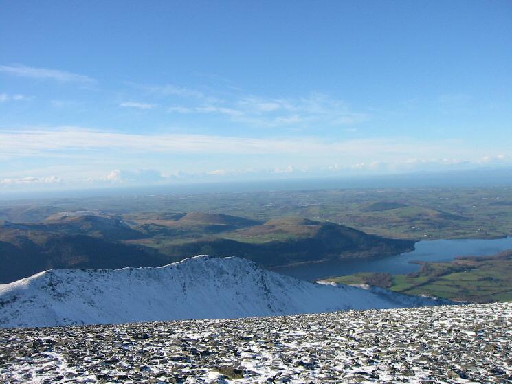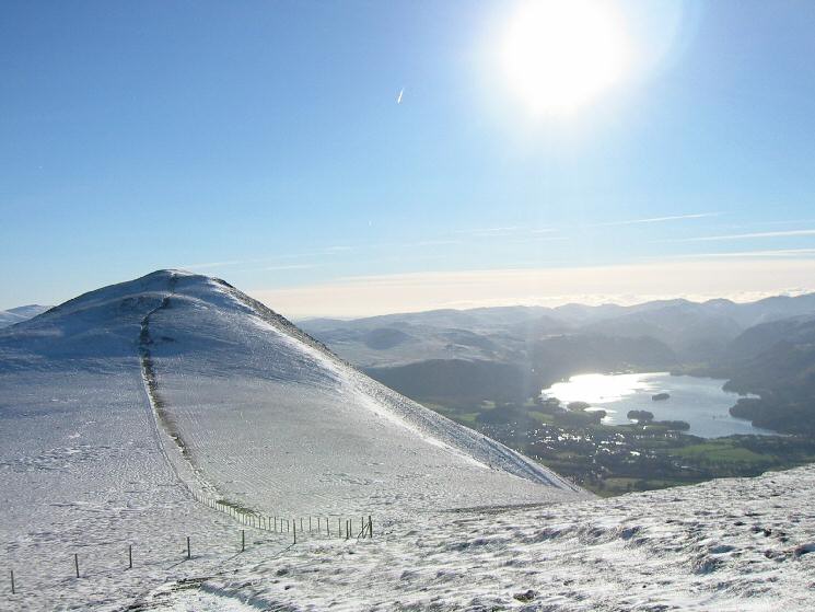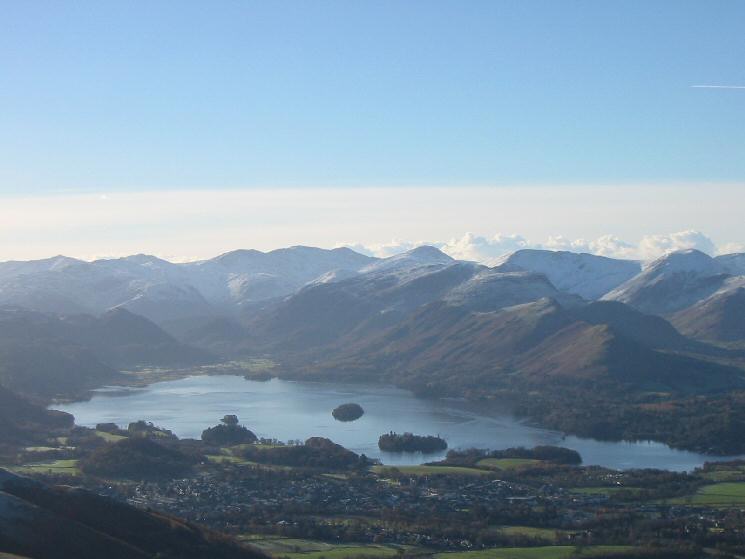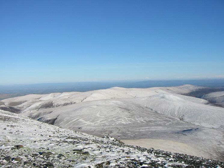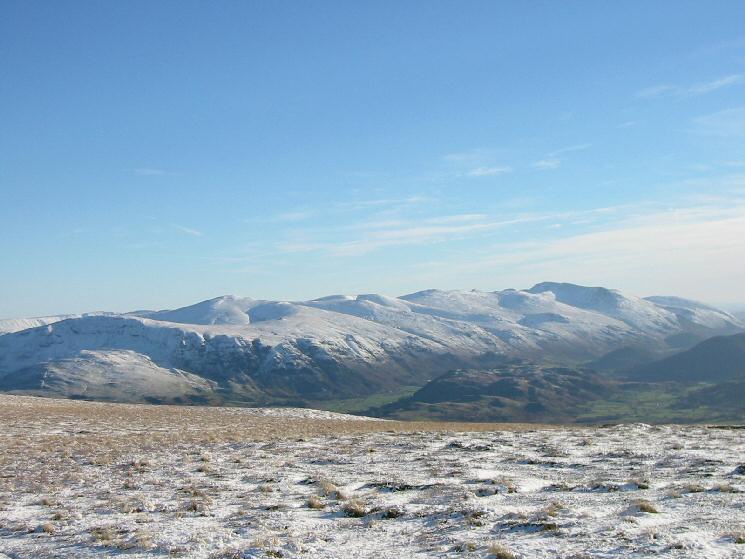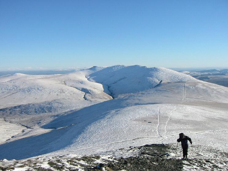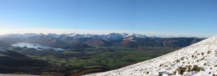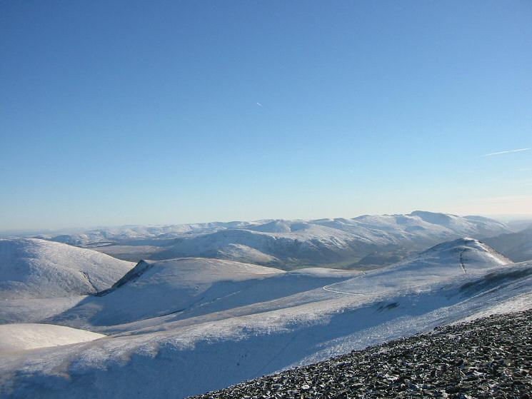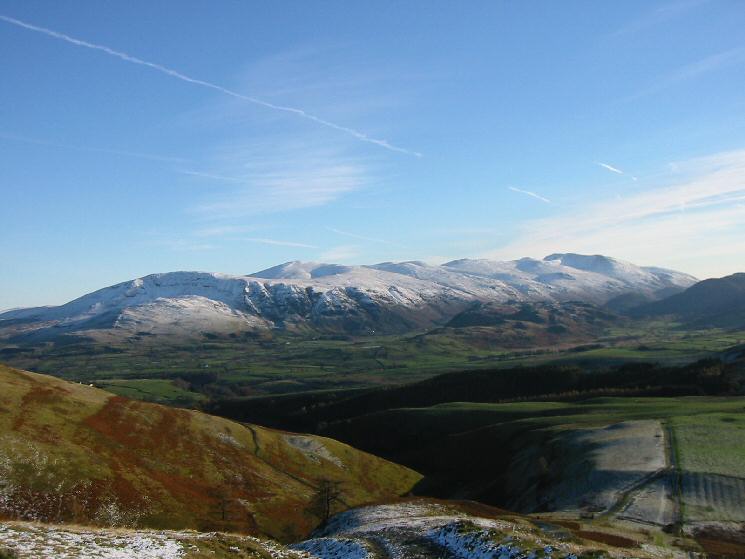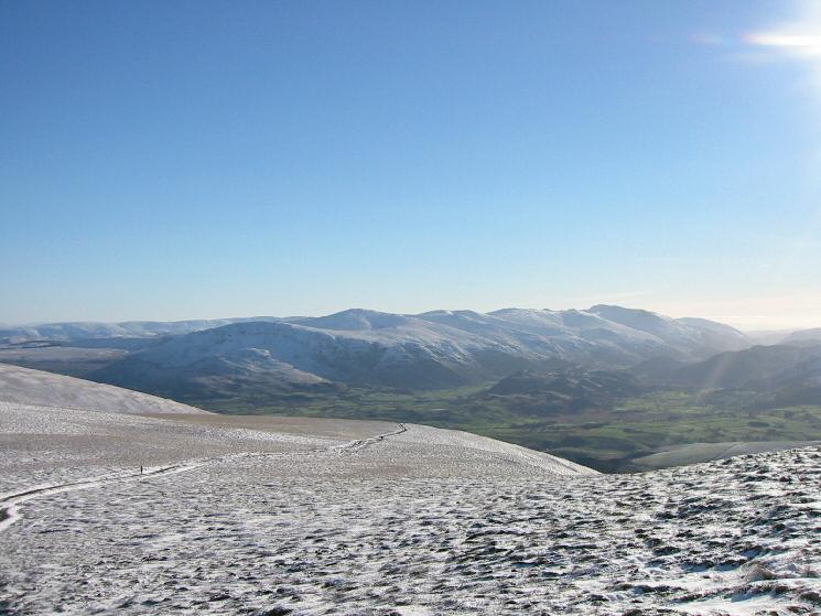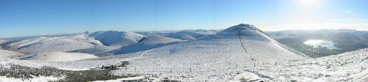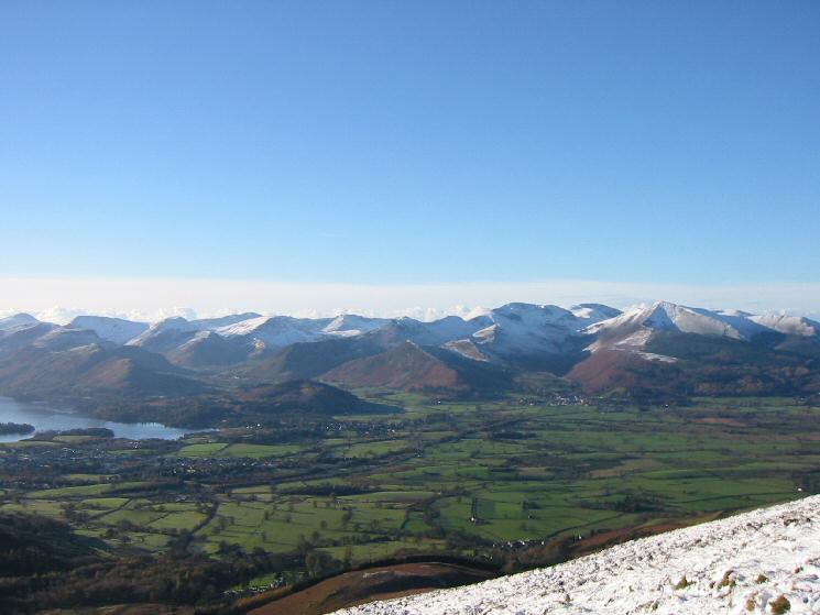 Lonscale Fell and Skiddaw Little Man with the Helvellyn range in the distance from Skiddaw