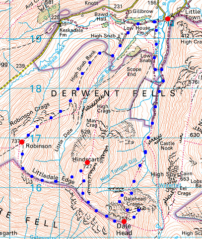 Route: Newlands Church, Little Town - High Snab Bank - Robinson - Littledale Edge - Hindscarth - Hindscarth Edge - Dale Head - Newlands Valley (via copper mine) - Newlands Church