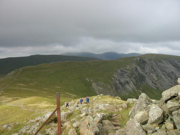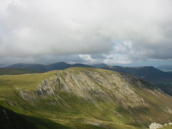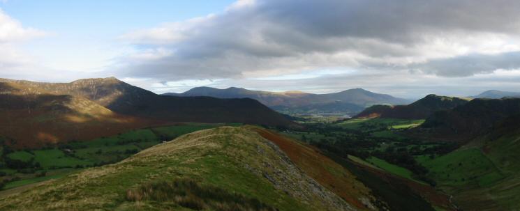 Lonscale Fell and Blencathra from the steep grassy path up onto High Snab Bank