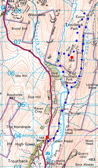 Route: Town Head, Troutbeck - Ing Lane - Hagg Bridge - Troutbeck Park Farm - slate bridge - Troutbeck Tongue - north ridge - Hagg Gill - Hagg Bridge - Ing Lane - Town Head
