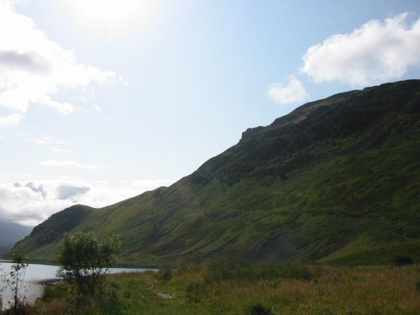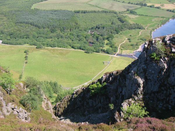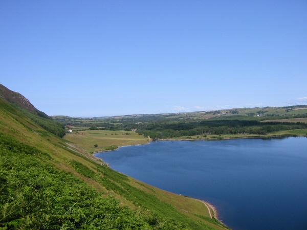 Looking back towards Ennerdale Water's weir from the ascent of Anglers Crag