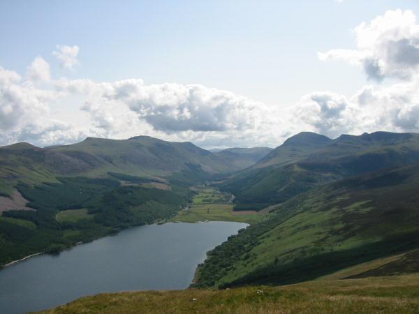 Looking down Ben Gill to Broadmoor and Ennerdale Water's outflow