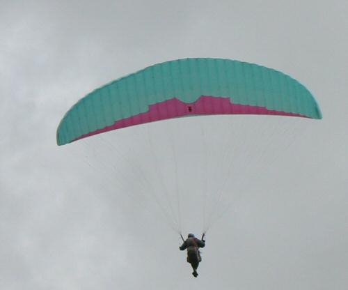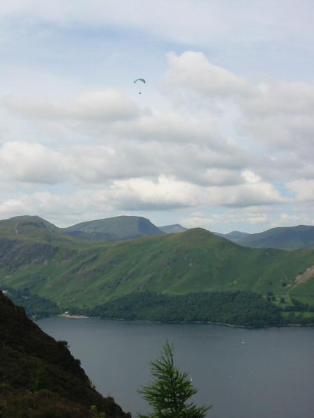 Close up of the paraglider above Walla Crag
