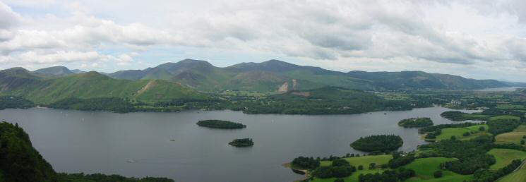 Derwent Water, Bassenthwaite Lake, The Vale of Keswick and the Skiddaw fells from Walla Crag's summit