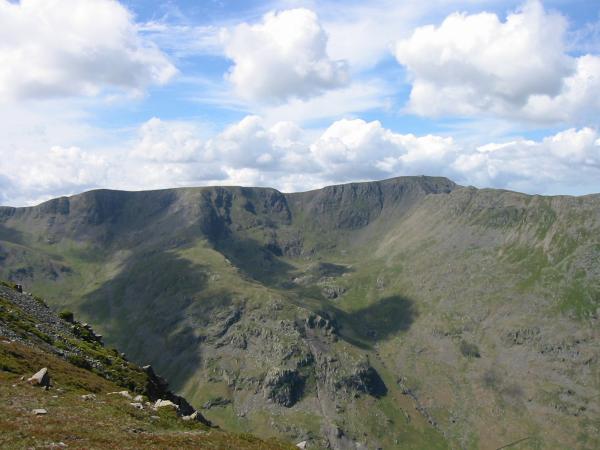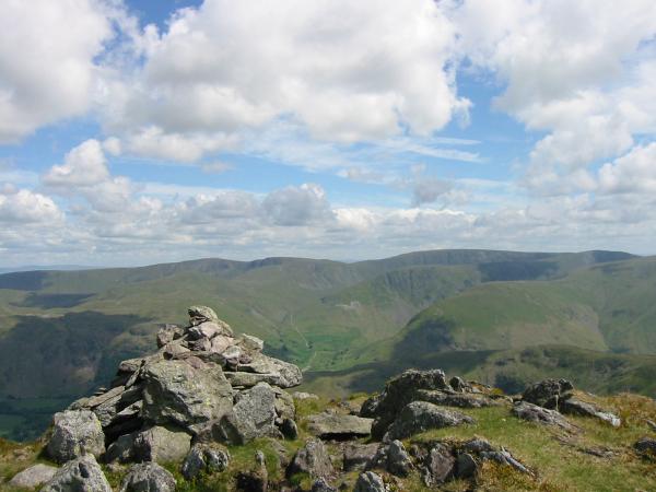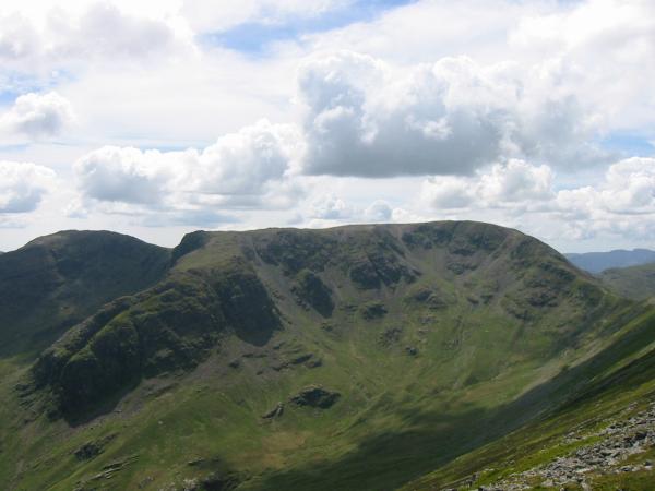 Saint Sunday Crag with the subsidiary top of Gavel Pike on the left from Birks summit