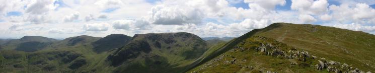 Dollywaggon Pike, Nethermost Pike, Helvellyn, Striding Edge and Catstycam from Saint Sunday Crag's summit