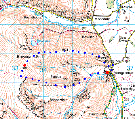 Route: Mungrisdale - River Glenderamackin - Bannerdale - Bowscale Fell - Bowscale Fell East Top - Bowscale Fell Far East Top - Mungrisdale