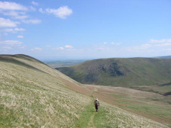 Looking over The Tongue and Bannerdale Crags to Blencathra from Bowscale Fell's east ridge
