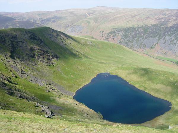 Bowscale Tarn. The high point on the skyline is High Pike