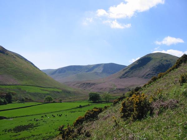Bannerdale Crags and The Tongue from the descent back into Mungrisdale
