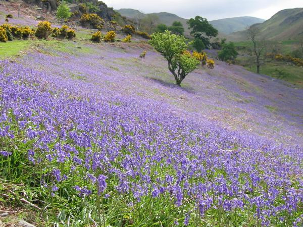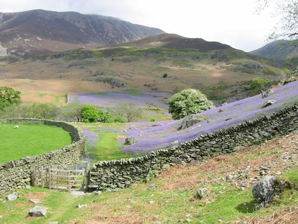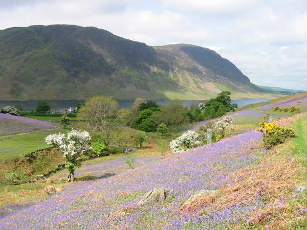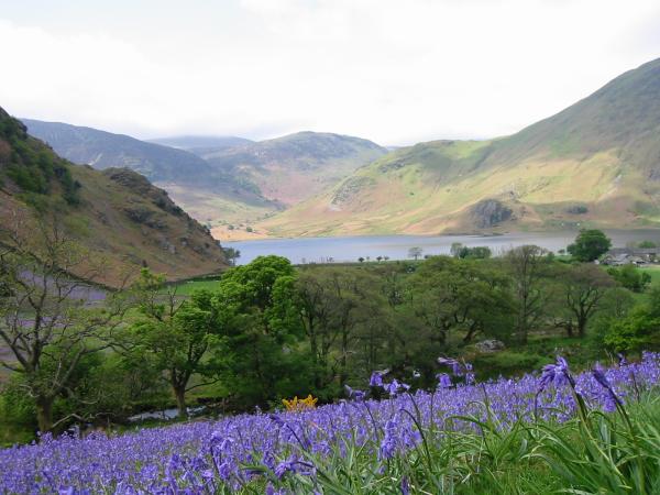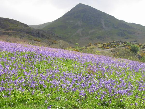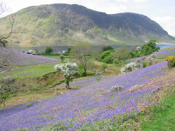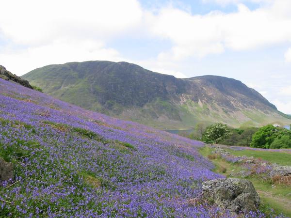 Rannerdale Bluebells, with Mellbreak seen across Crummock Water