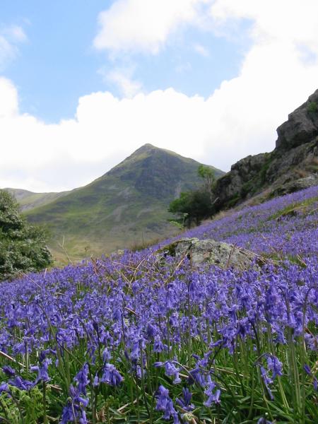 More Rannerdale Bluebells, with the top of Grasmoor in cloud