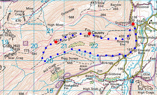 Route: Stonycroft near Stair - Rowling End - Causey Pike - Scar Crags - Sail Pass - Rigg Beck - road - Stonycroft near Stair