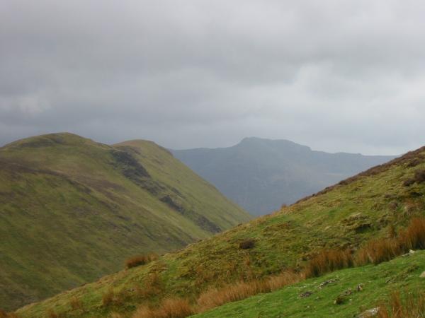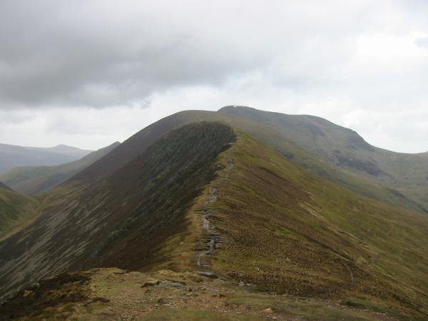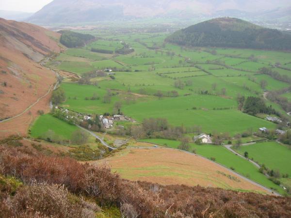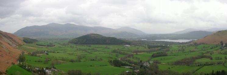 Swinside with the Skiddaw Fells and Blencathra behind from the ascent of Rowling End