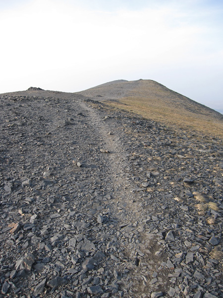 Skiddaw summit ridge, looking north, the trig point is on the furthest point
