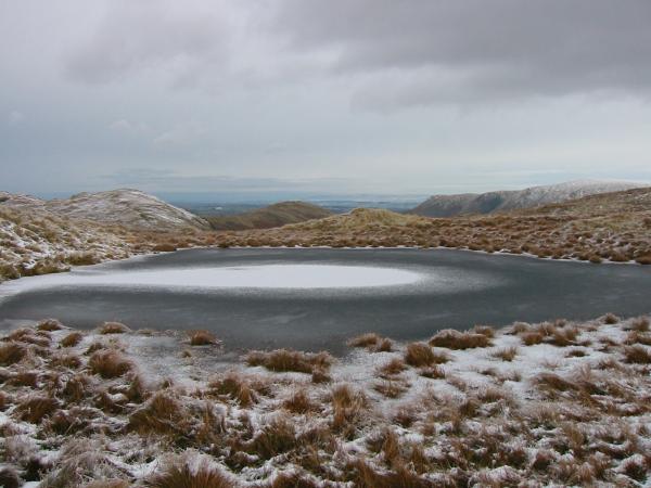 Frozen tarn on Brock Crags