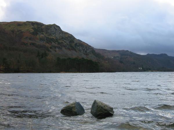 The Hundred Year Stone, Calfclose Bay, Derwent Water with Falcon Crag behind