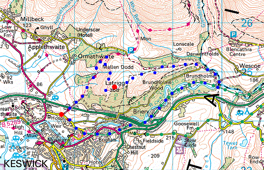 Route: Briar Rigg, Keswick - Latrigg - Brundholme - Keswick Railway footpath - Briar Rigg